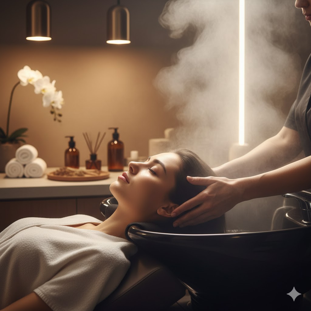 Ihr luxuriöses Head Spa: Die Quelle tiefster Entspannung. Revitalisieren Sie Ihre Kopfhaut für gesundes und glänzendes Haar.